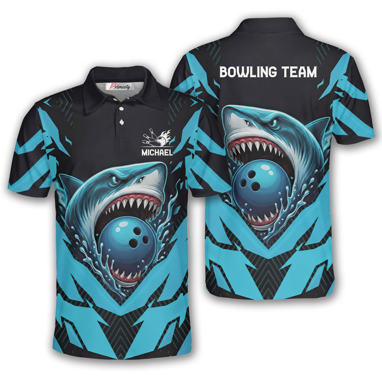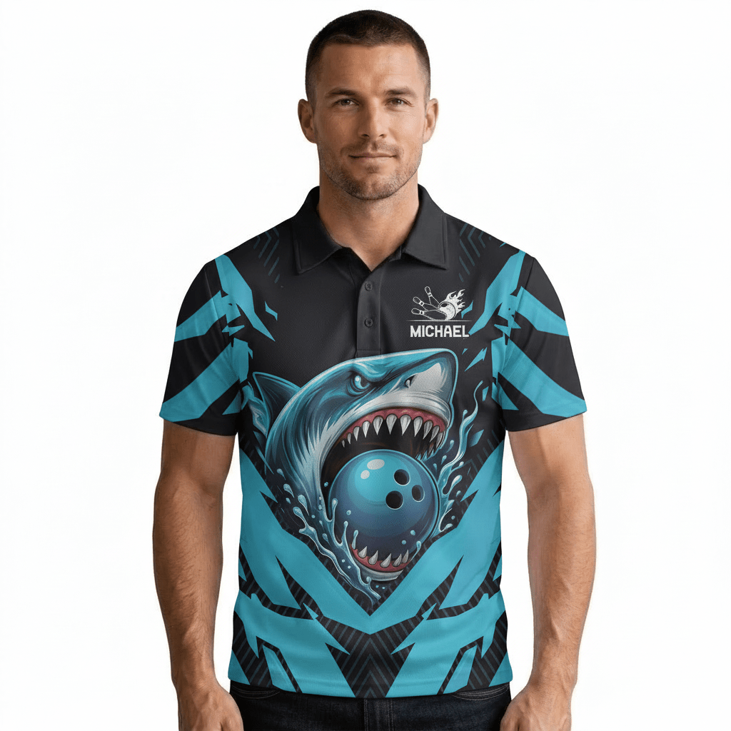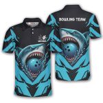 Aggressive Blue Shark Custom Bowling Shirt
