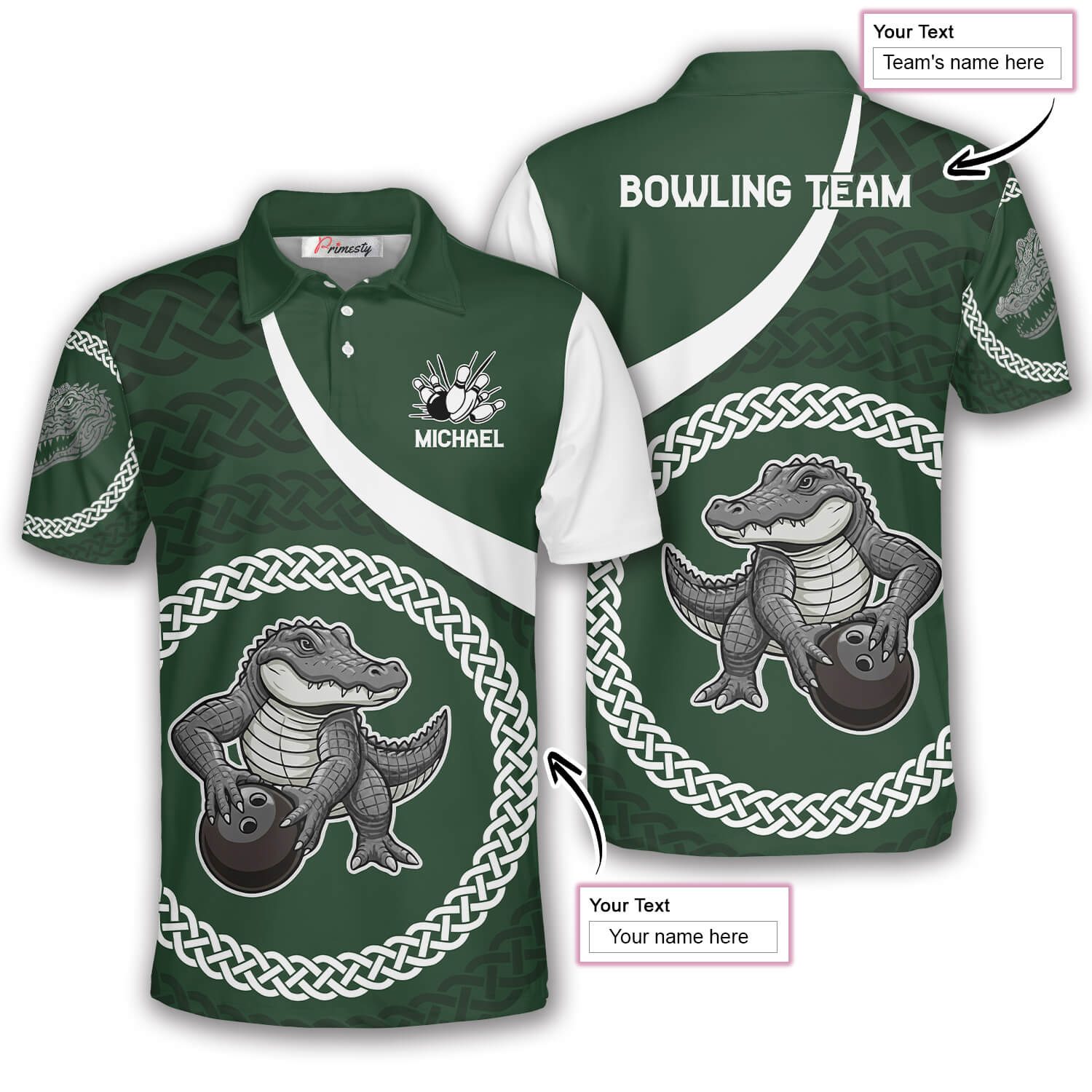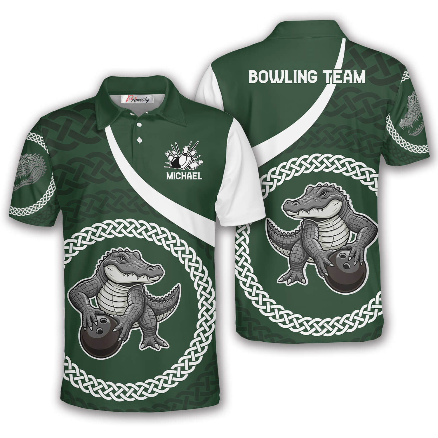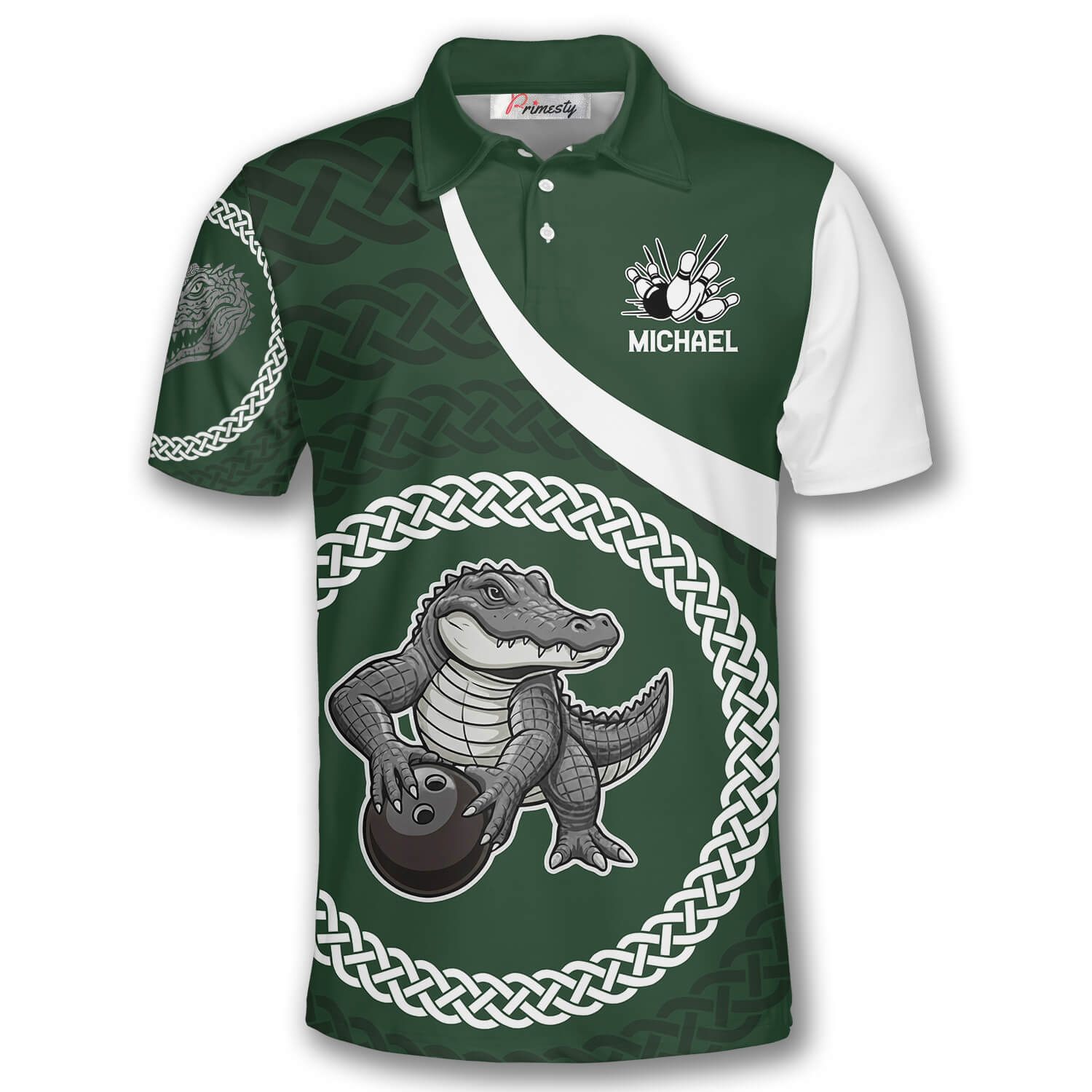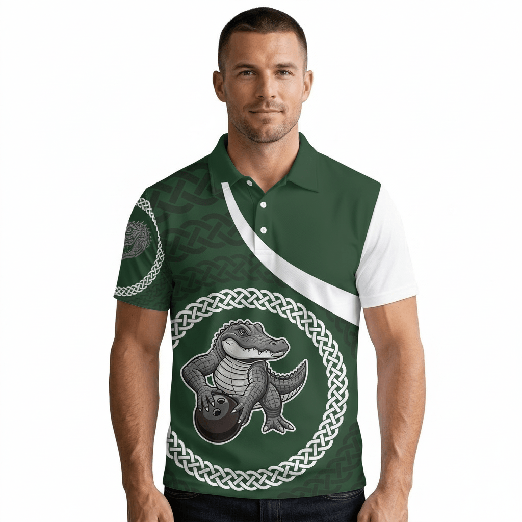 Alligator Black Green Celtic Knot Pattern Custom Bowling Shirt