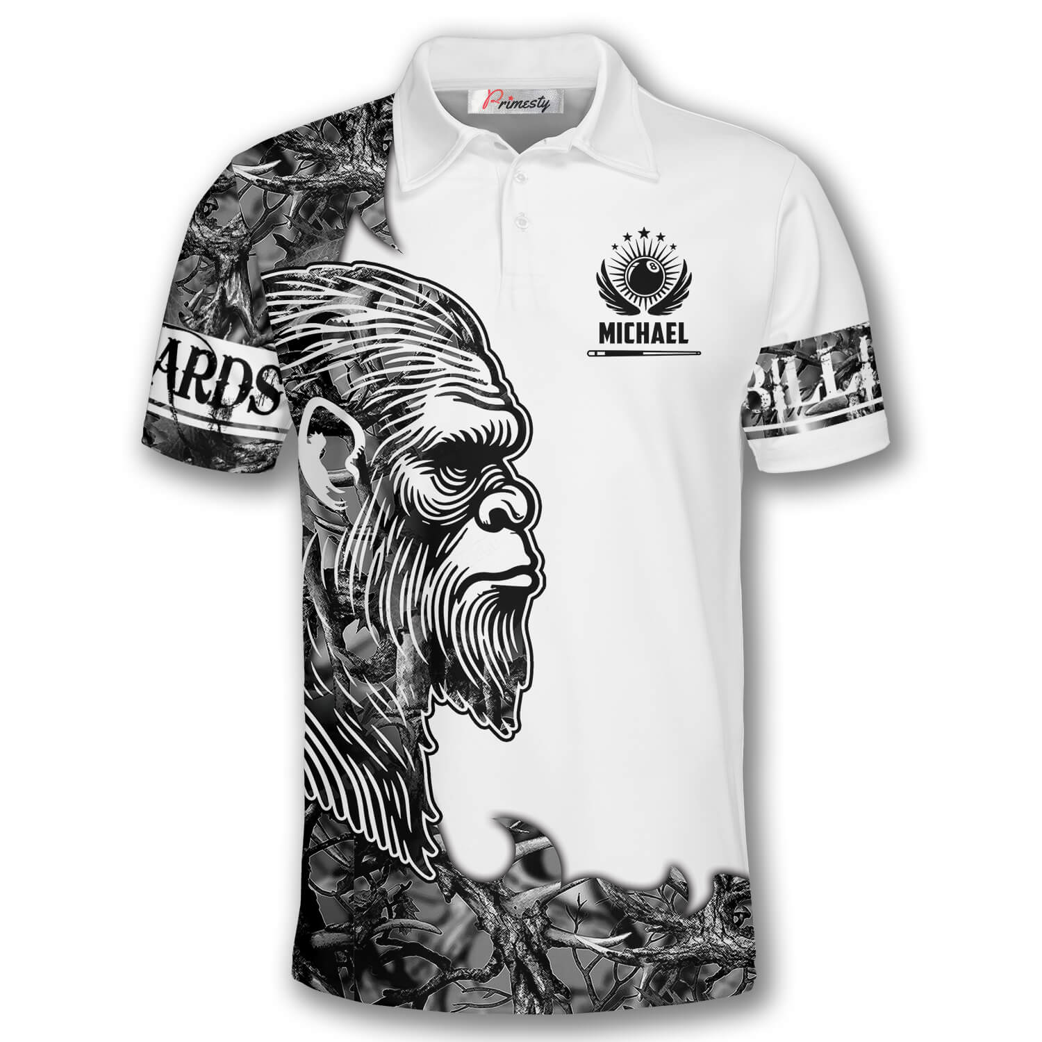 Bigfoot in Jungle Black White Version Custom Billiard Shirt