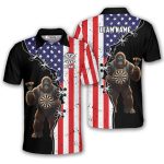 Bigfoot Playing Darts Retro USA Flag Custom Dart Shirt