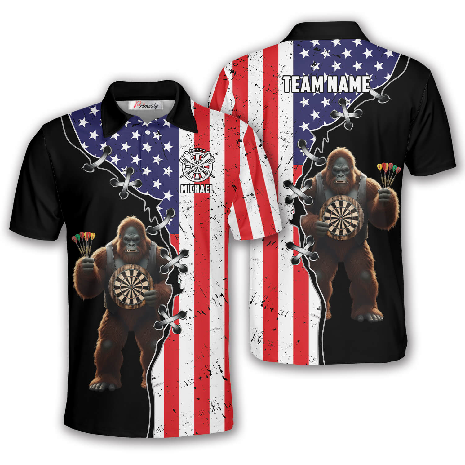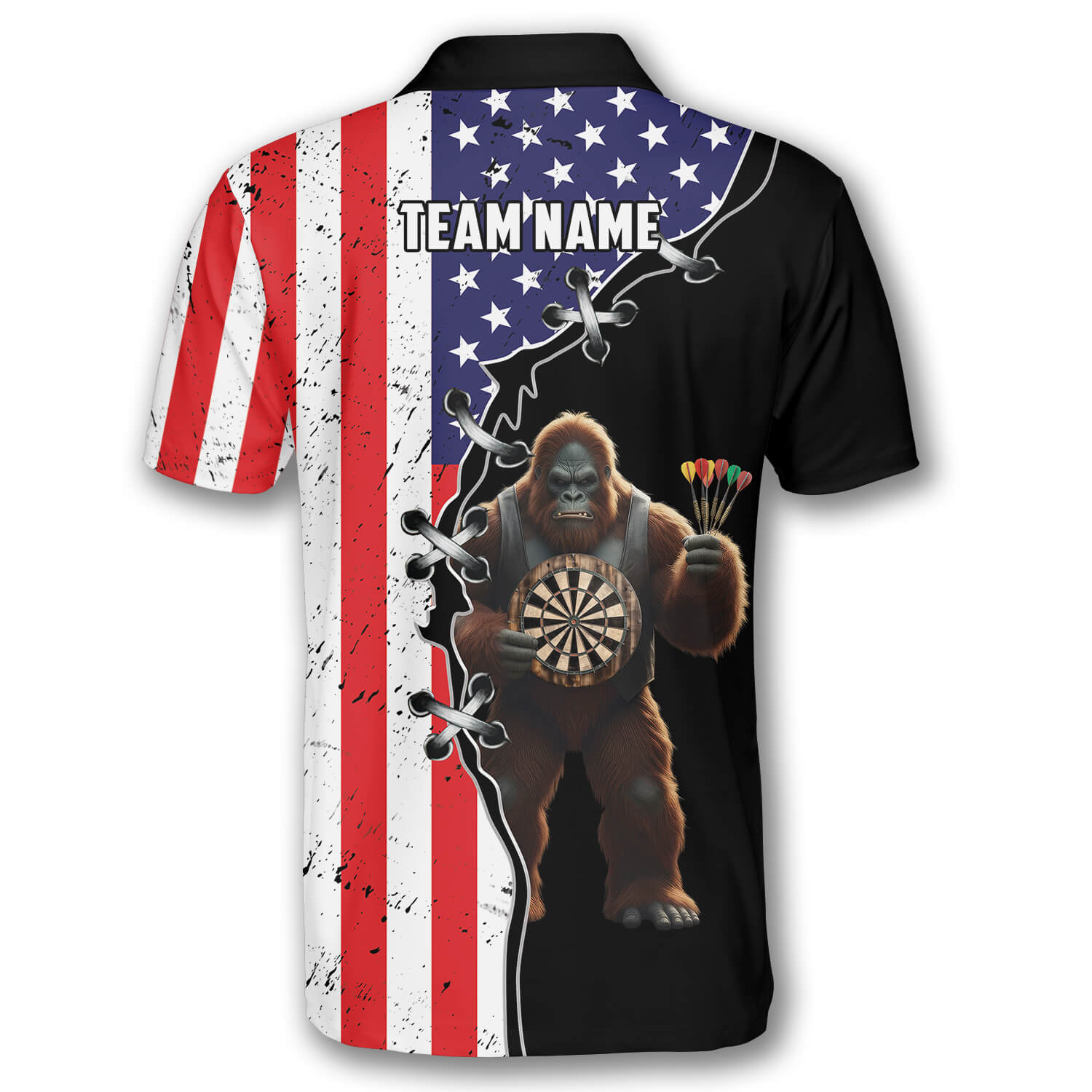 Crafted from a high-performance blend of polyester and spandex, our Bigfoot dart shirts feature quick-dry, moisture-wicking fabric that keeps you cool, comfortable, and flexible through every throw.