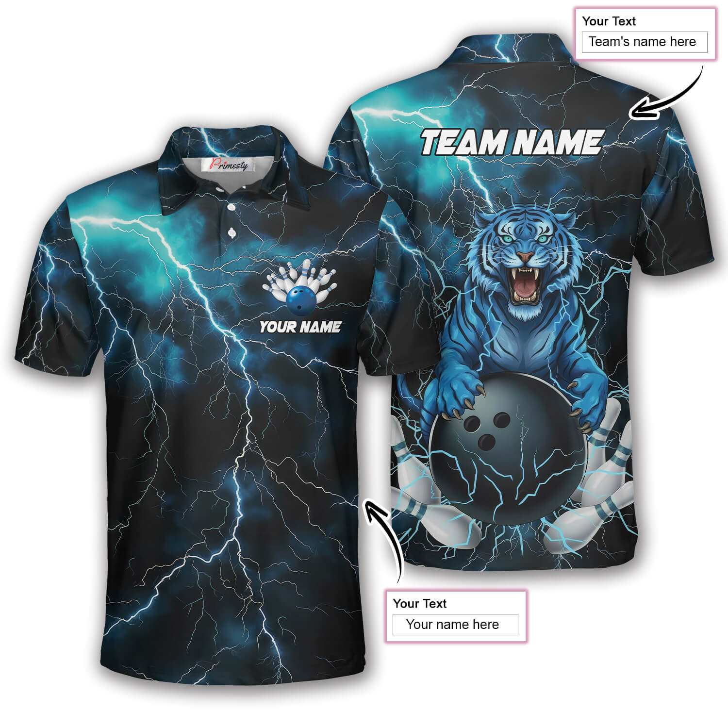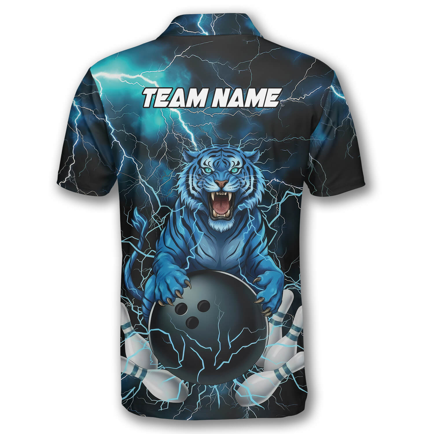 Blue Tiger Thunder Lightning Custom Bowling Shirt