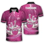 Breast Cancer Awareness Strike Lightnings Custom Bowling Shirts For Men