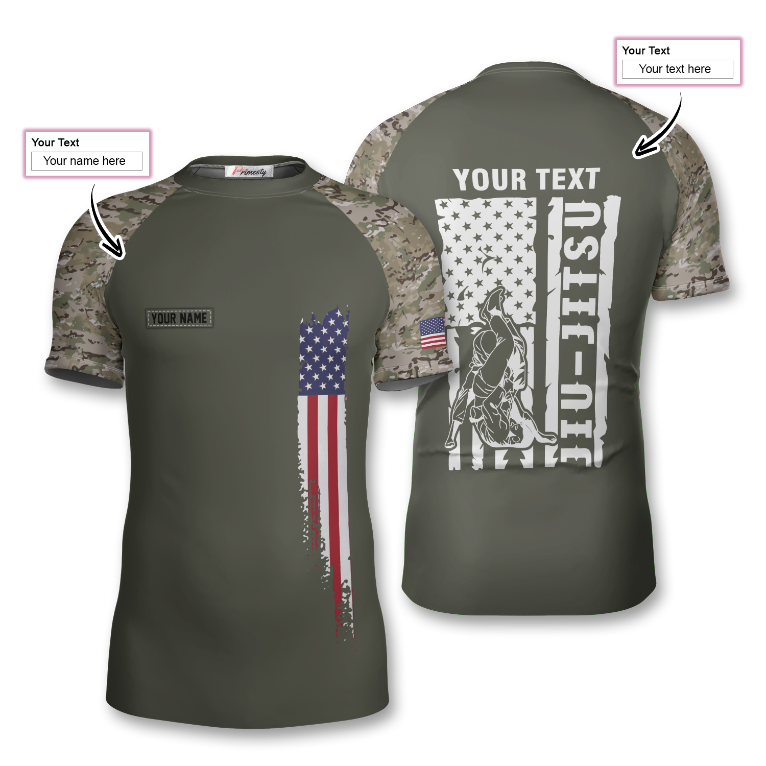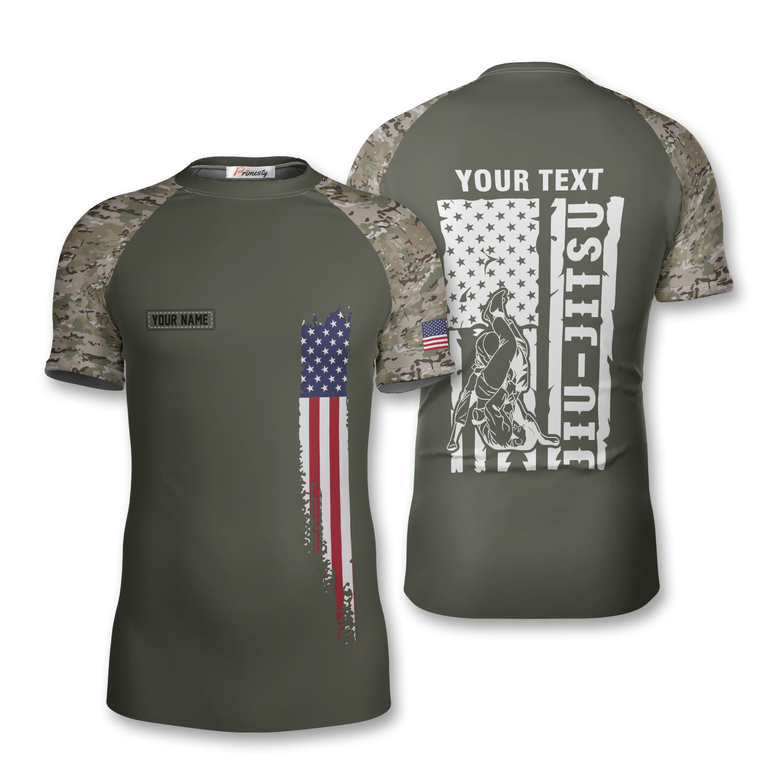 Camo Grunge USA Flag BJJ Custom Brazilian Jiu Jitsu Rash Guard