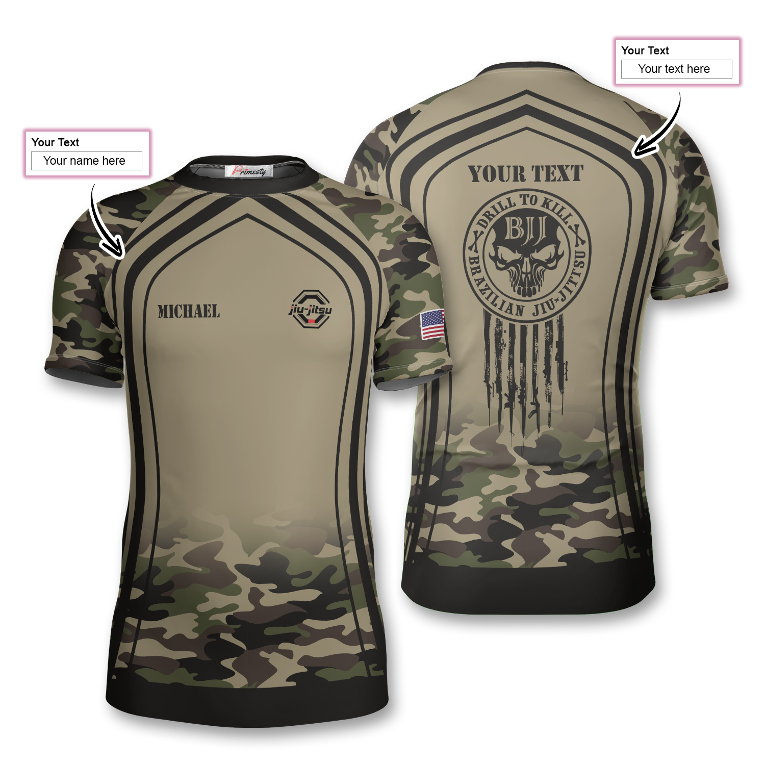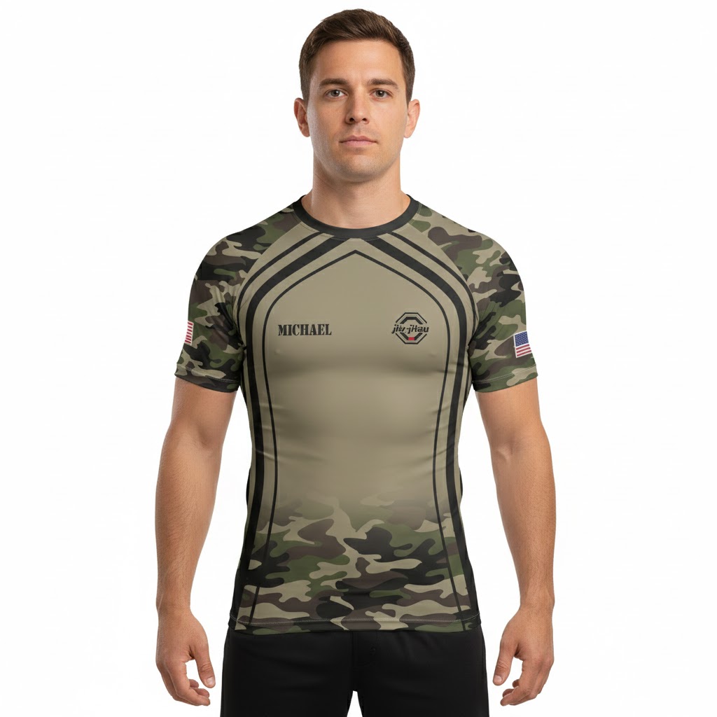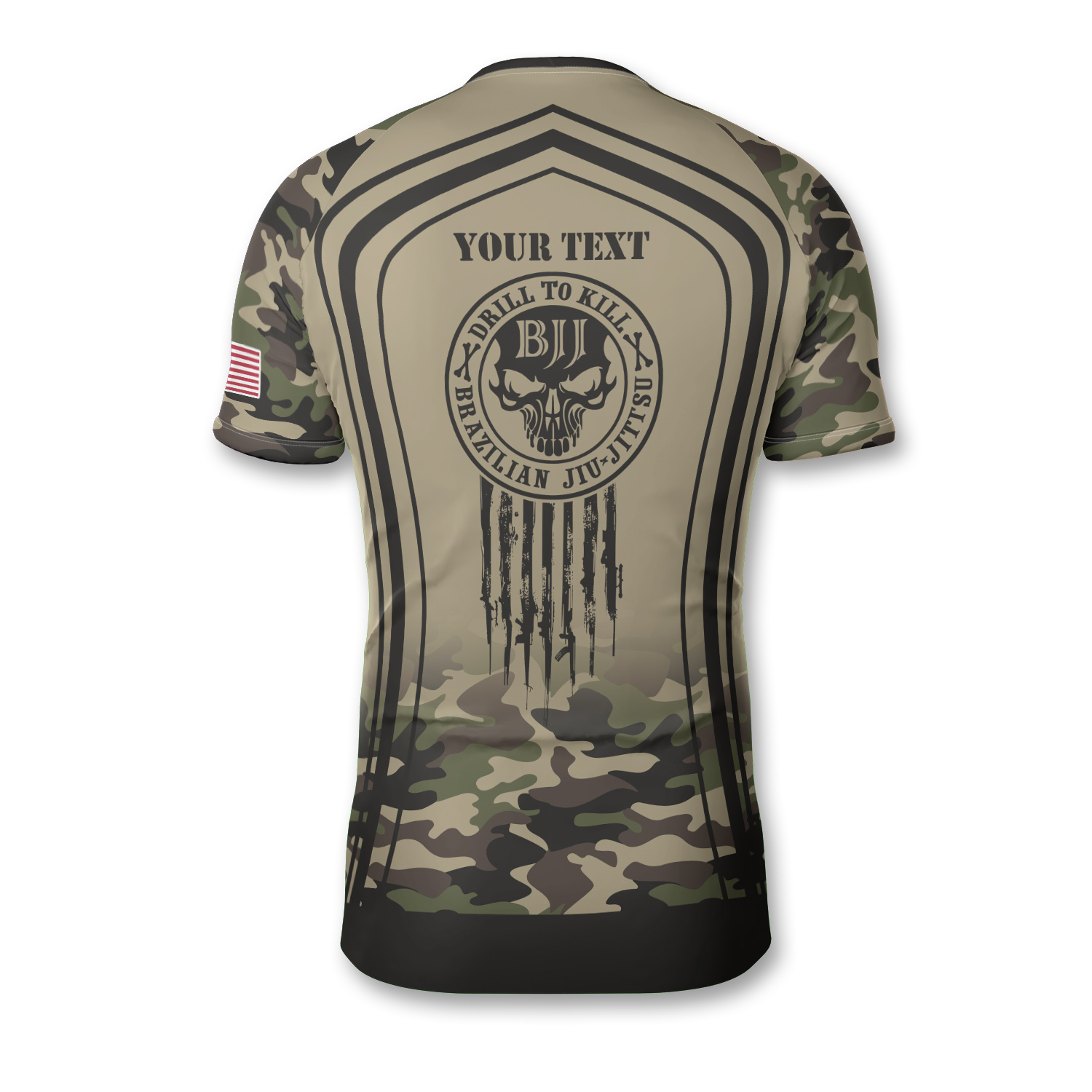 Drill To Kill Skull Camo Flag BJJ Custom Brazilian Jiu Jitsu Rash Guard