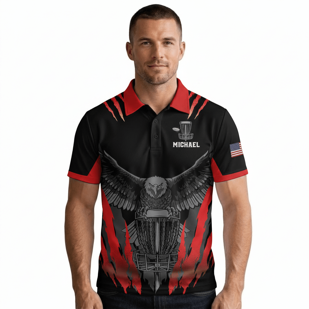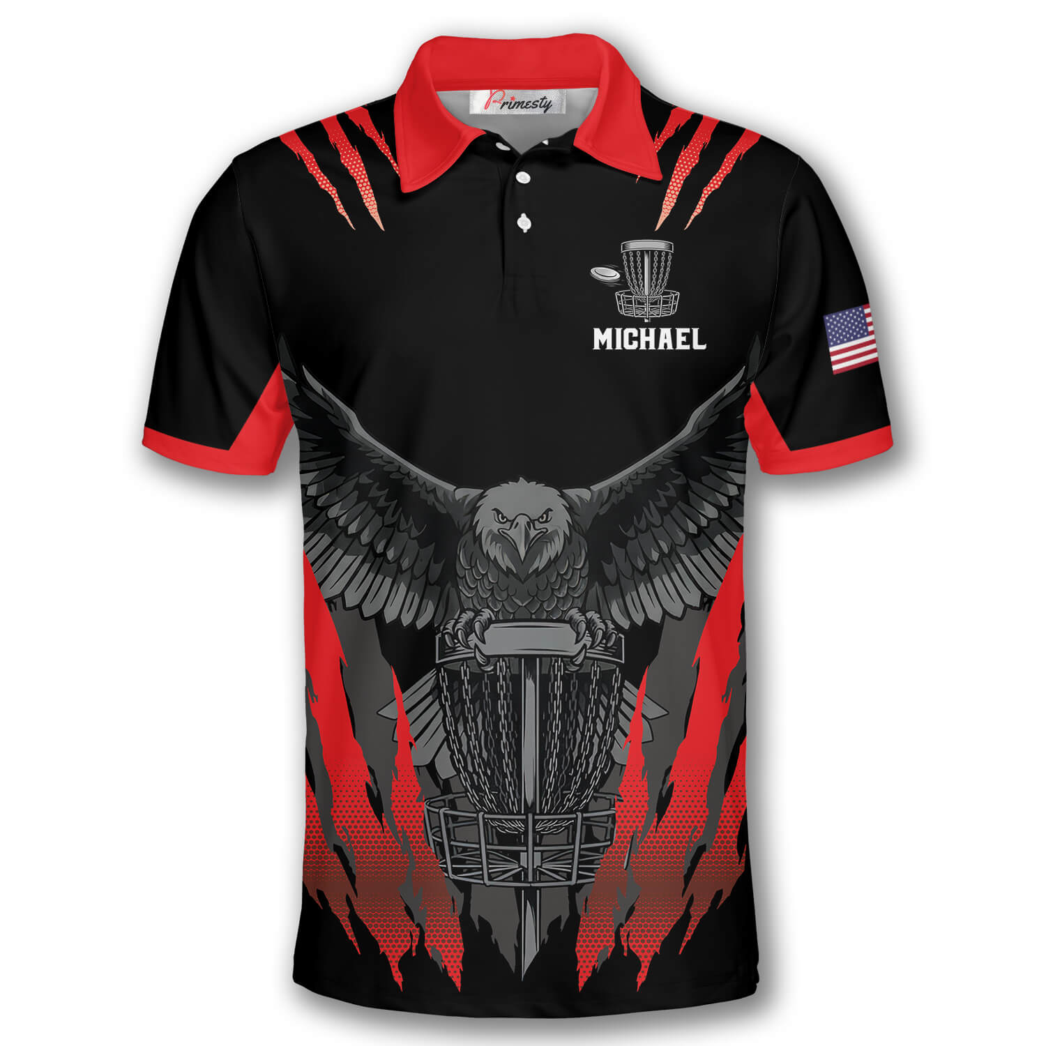 Eagle Red Scratches Disc Golf Basket Custom Disc Golf Shirt