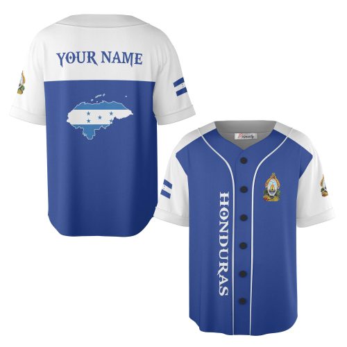Flag Map Coat of Arms Blue Custom Honduras Baseball Jersey