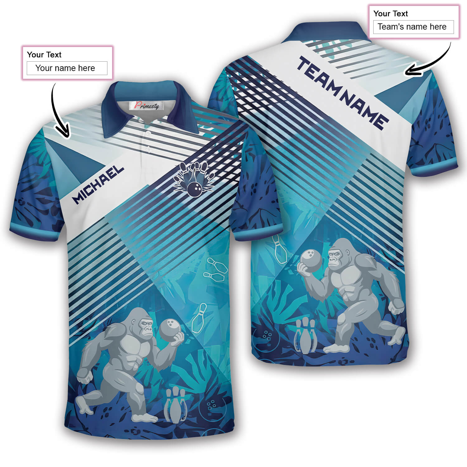 Gorilla Playing Bowling Blue Jungle Custom Bowling Shirt