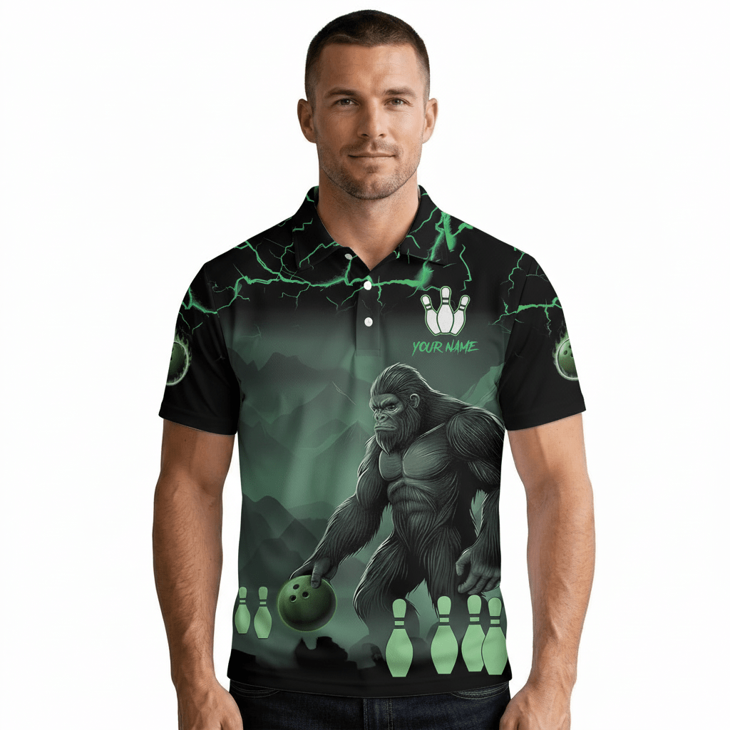 Gorilla Playing Bowling Dark Green Lightnings Custom Bowling Shirt