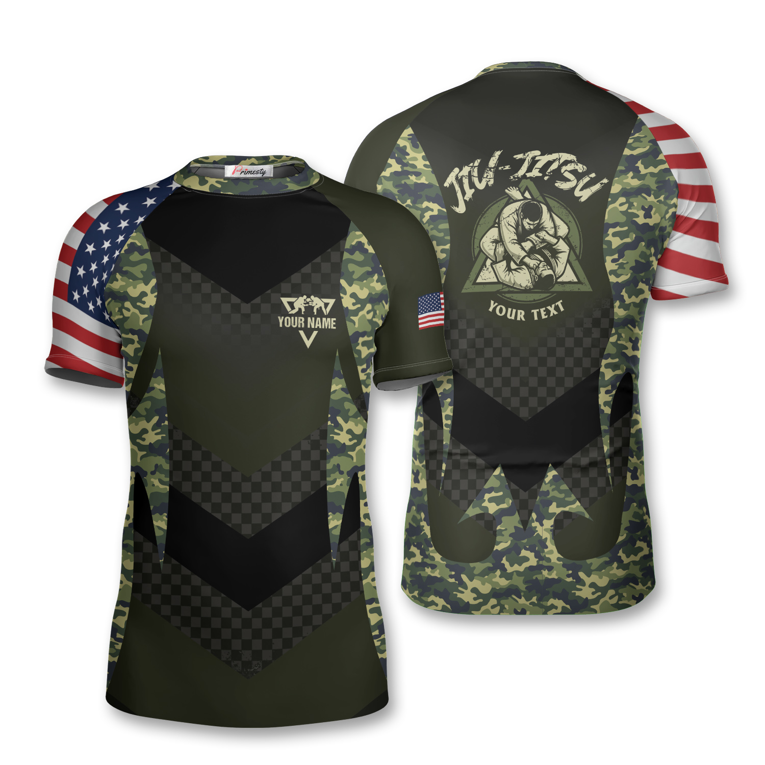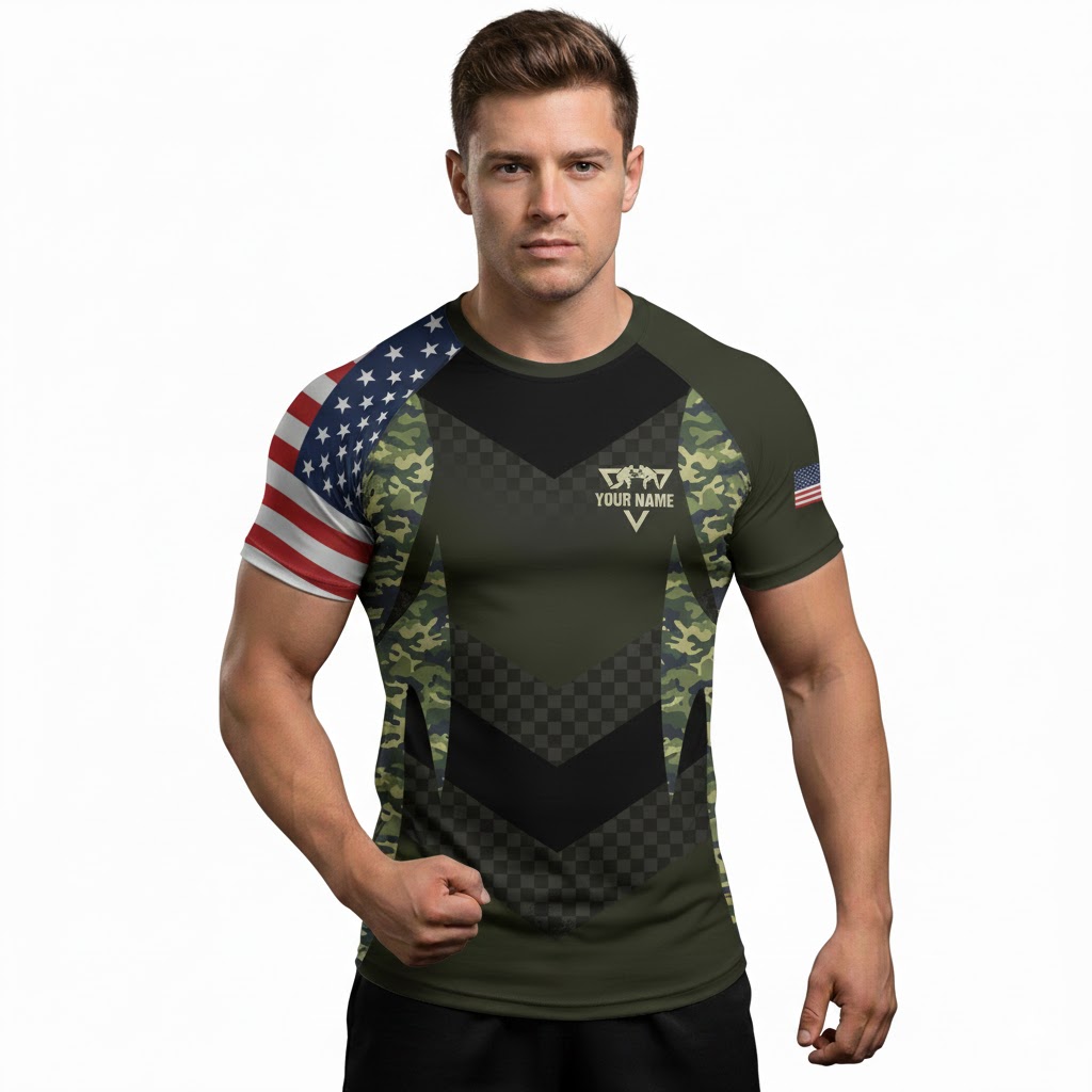 Green Camo USA Flag BJJ Custom Brazilian Jiu Jitsu Rash Guard