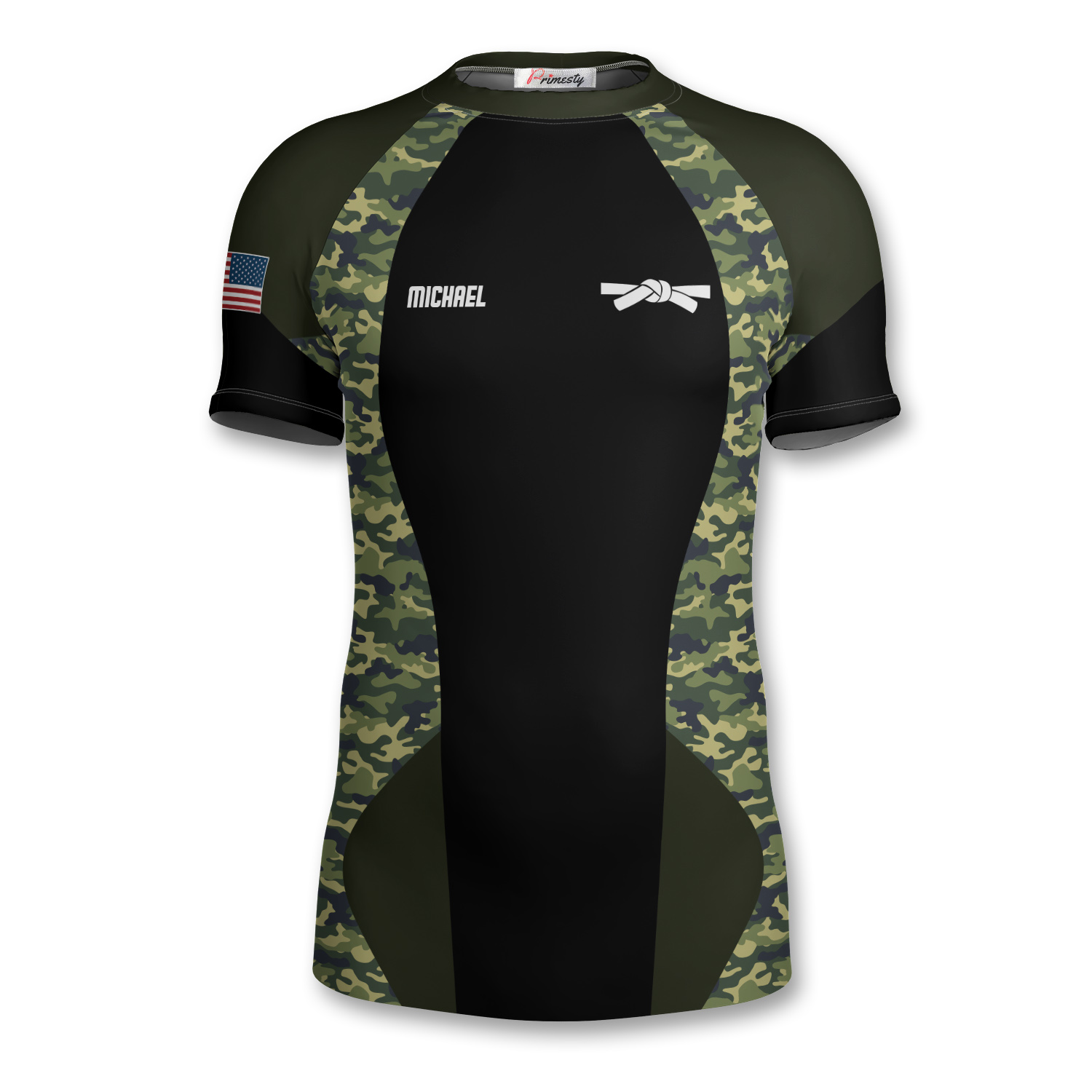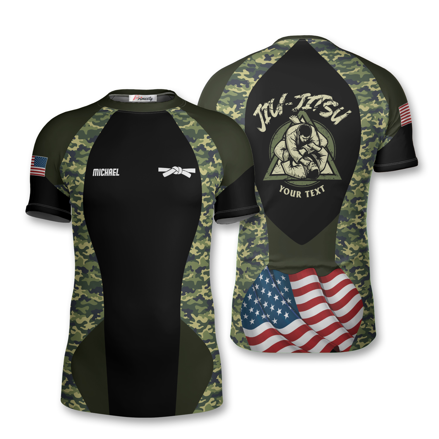 Green Camo Waving USA Flag Custom Brazilian Jiu Jitsu Rash Guard