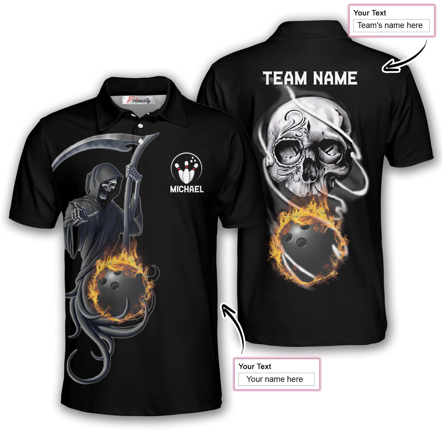 Grim Reaper Fire Flame Bowling Ball Custom Bowling Shirt