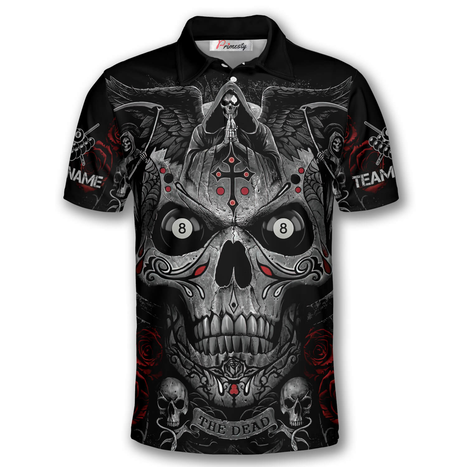 Grim Reaper Praying 8 Ball Skull Design Custom Billiard Shirt