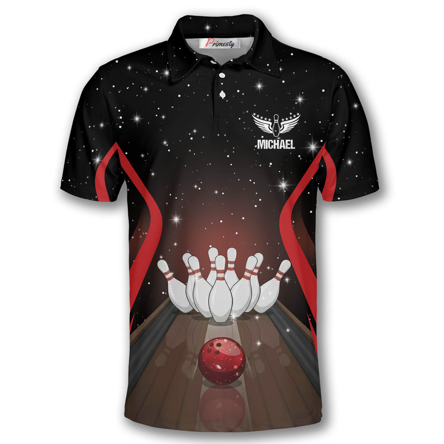 This men’s  bowling polo shirt is designed for comfort, style, and peak performance on the lanes. Made from a soft, lightweight blend of polyester and spandex, it provides excellent breathability and flexibility, making it perfect for bowling or casual wear.