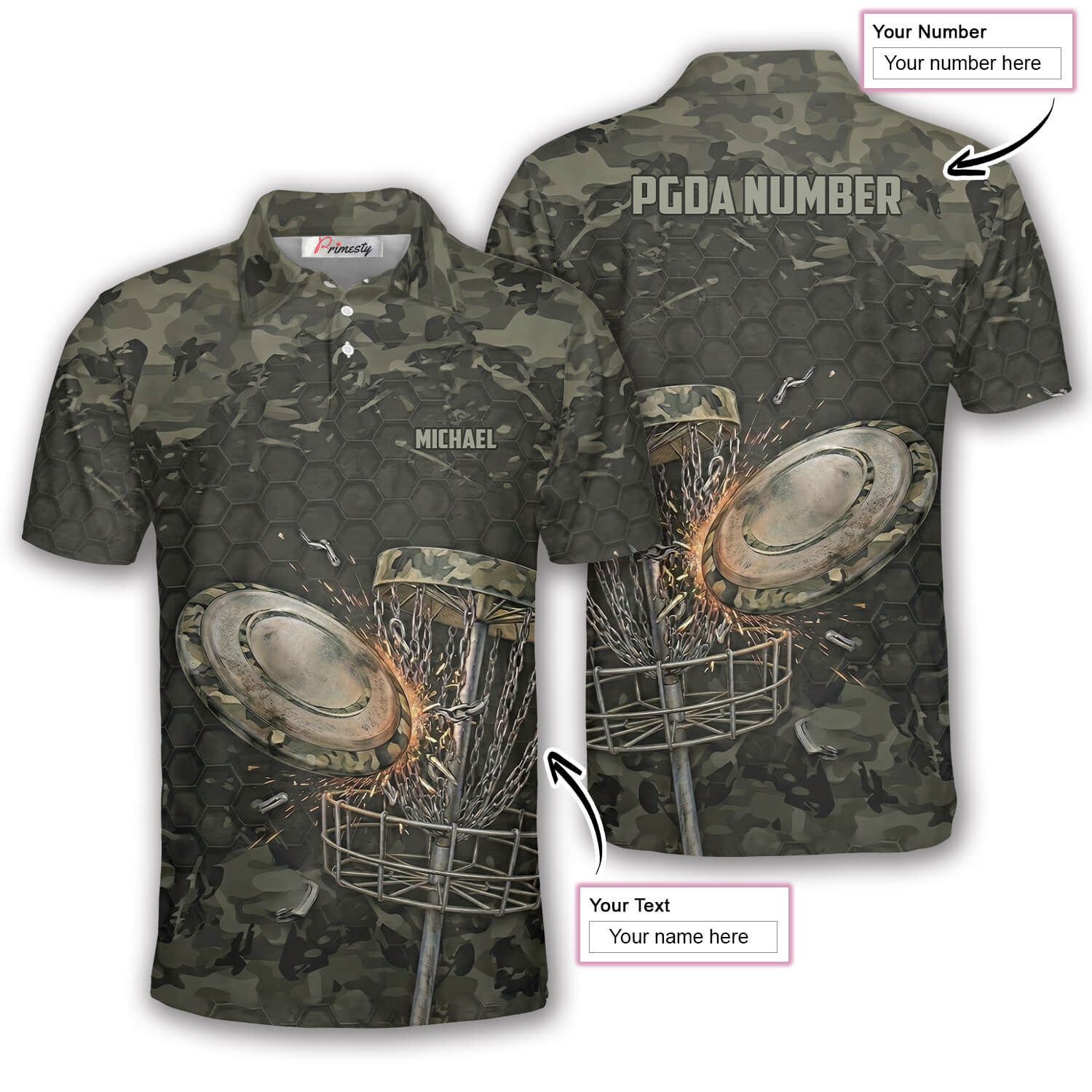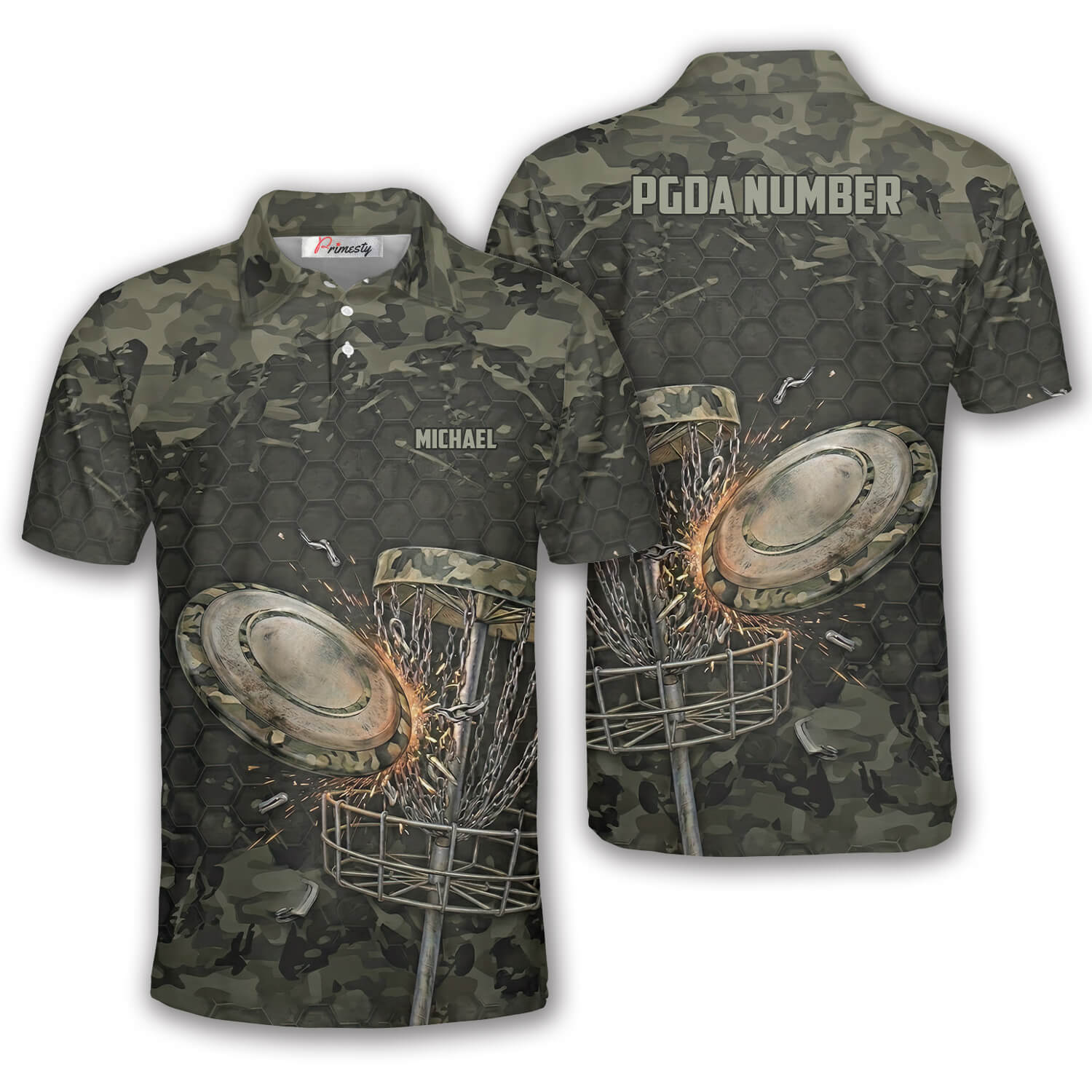 Military Camo Honeycomb Camouflage Pattern Custom Disc Golf Shirt