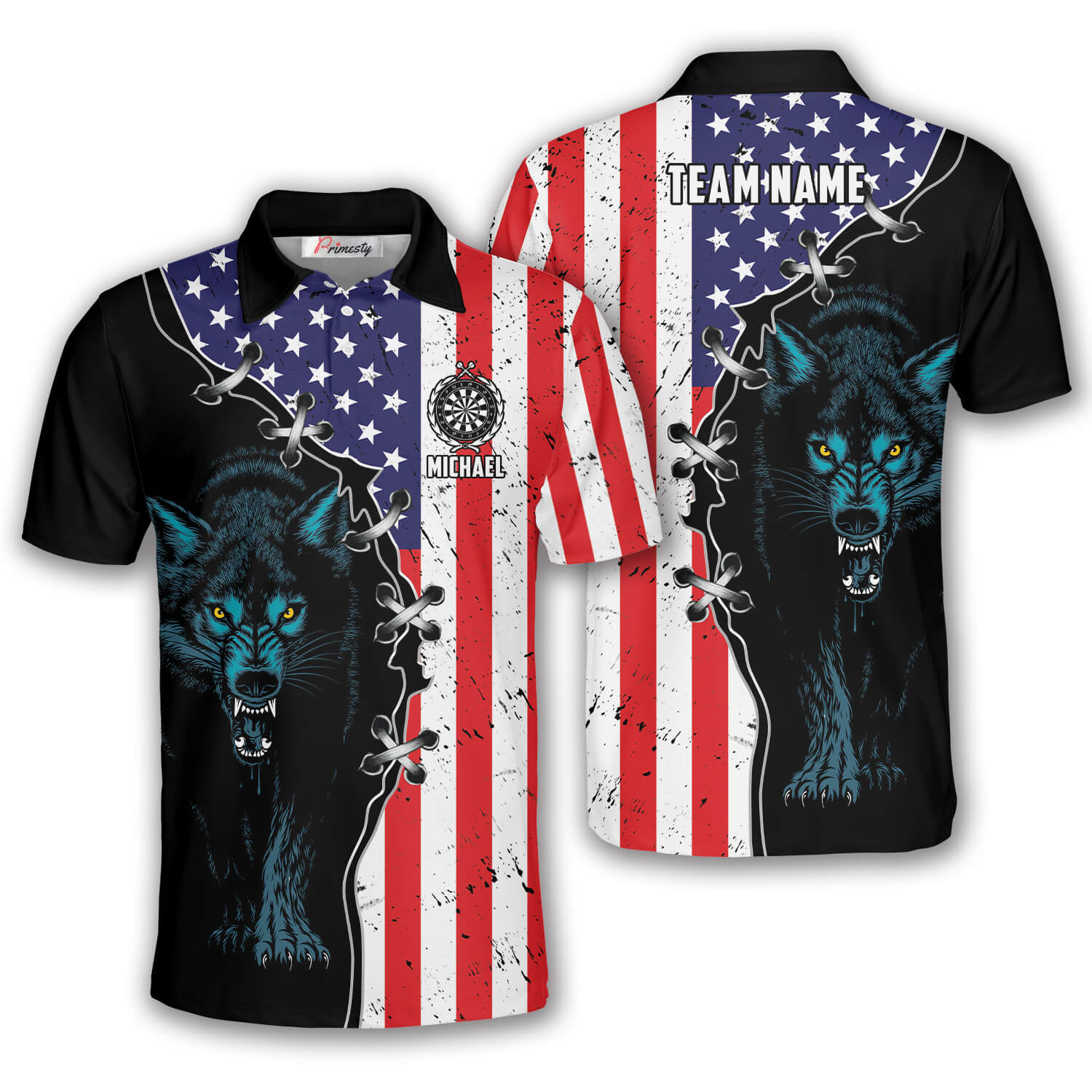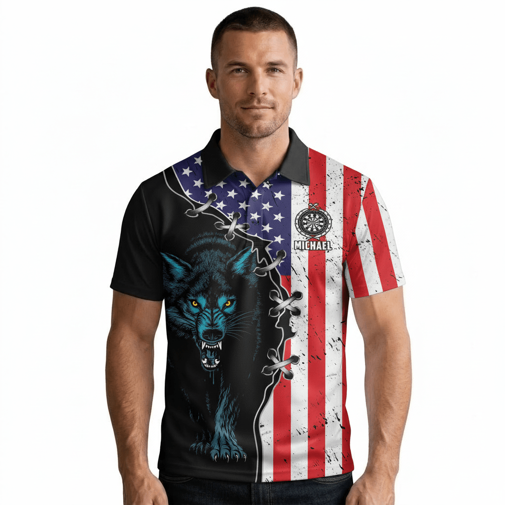 Night-Wolf Patriotic Retro USA Flag Custom Darts Shirt
