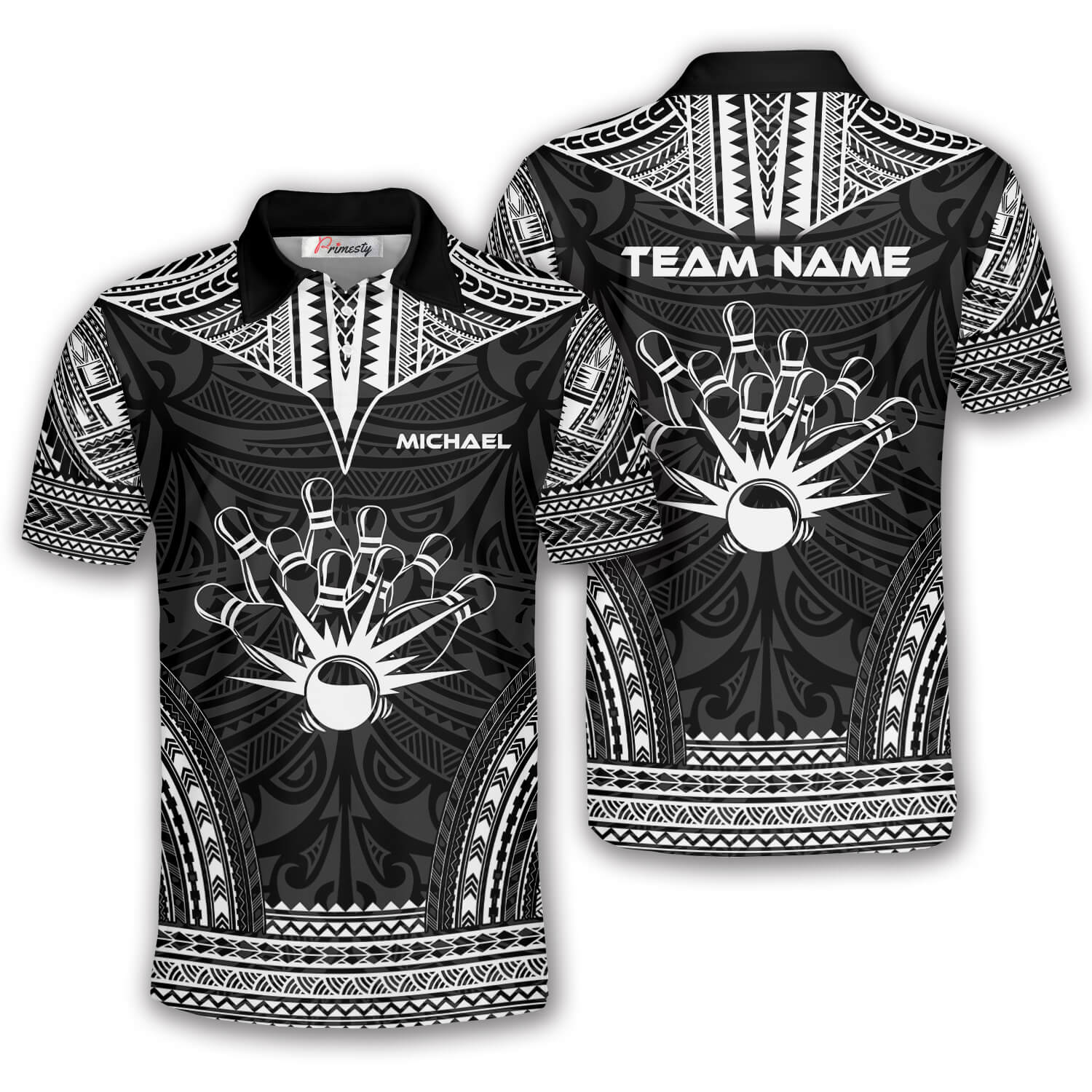 Polynesian Tattoo Black Custom Bowling Shirts for Men