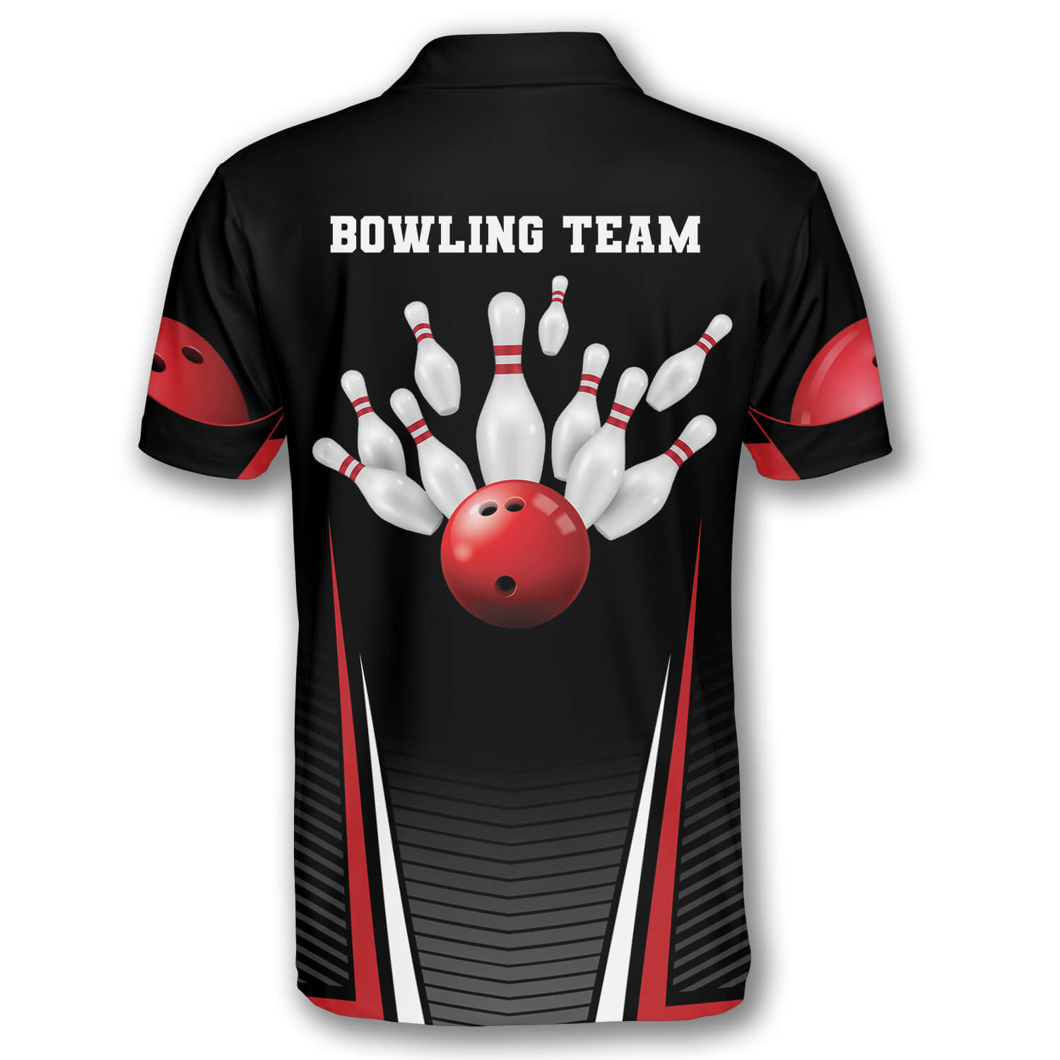 Red Black Bowling Strike Custom Logo Bowling Shirt