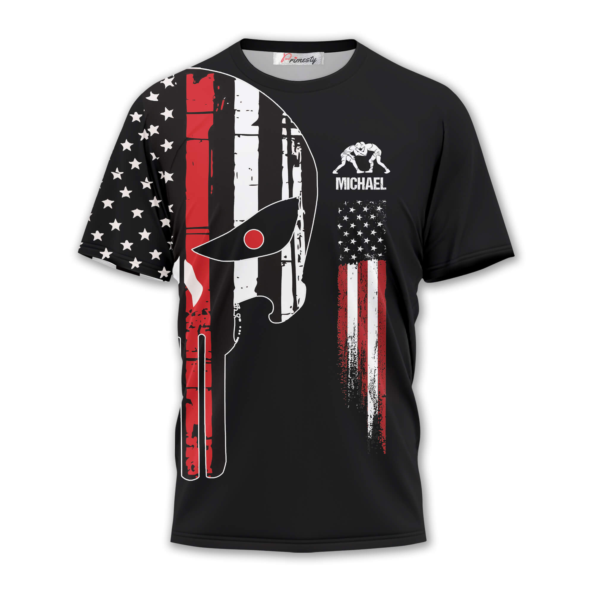 Red Black Punisher Skull Custom Wrestling Shirt
