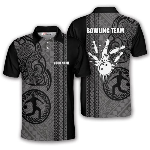 Samoa Tribal Tattoo Grey Custom Bowling Shirts for Men