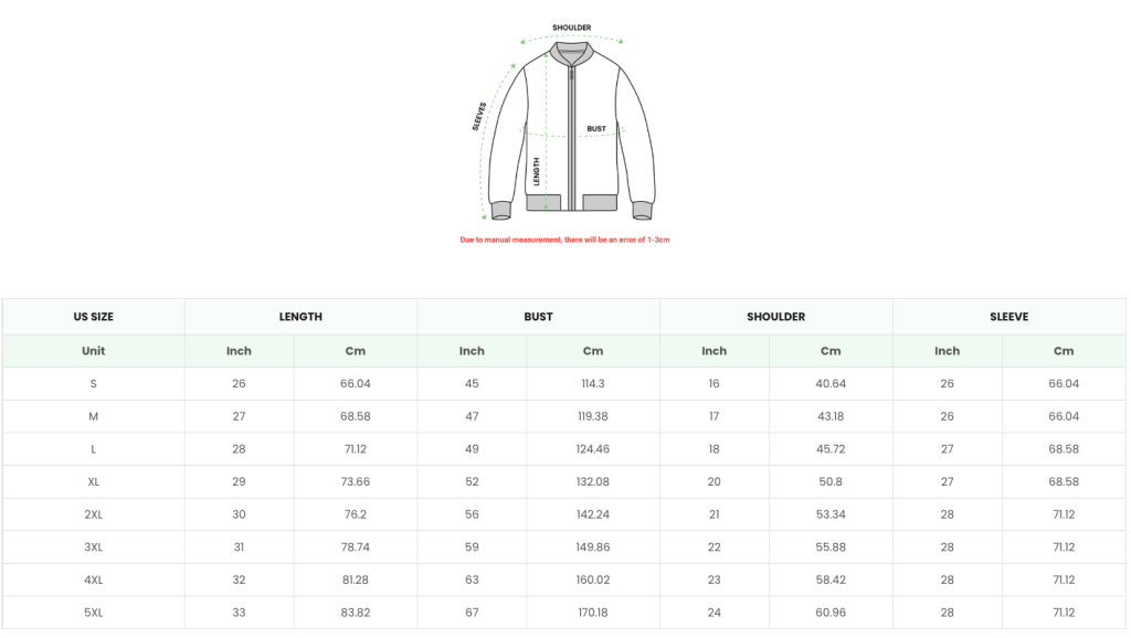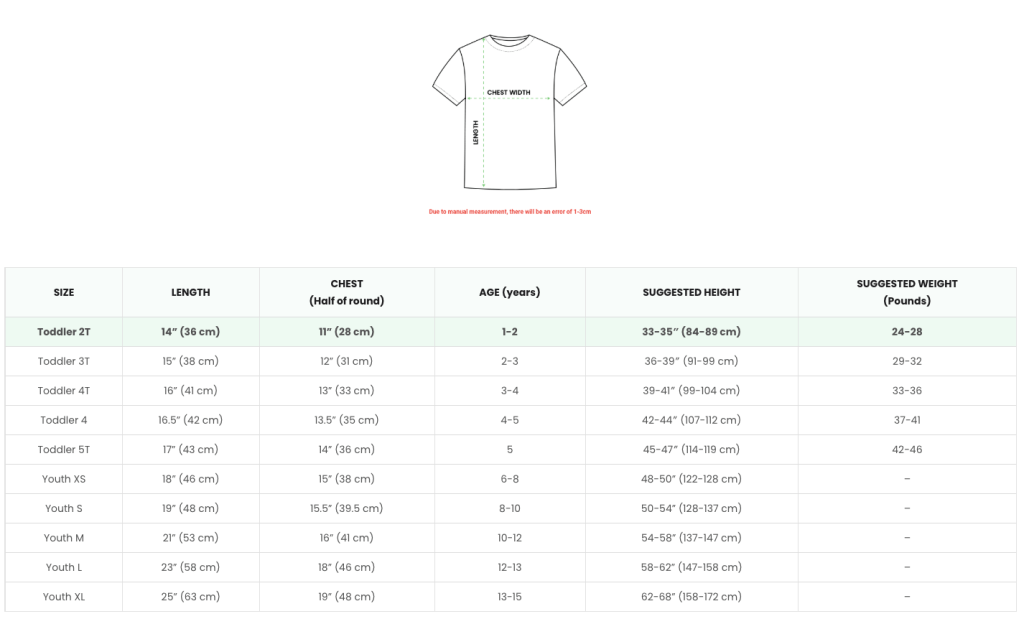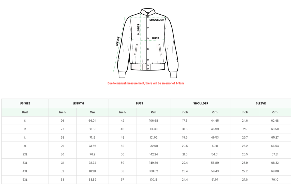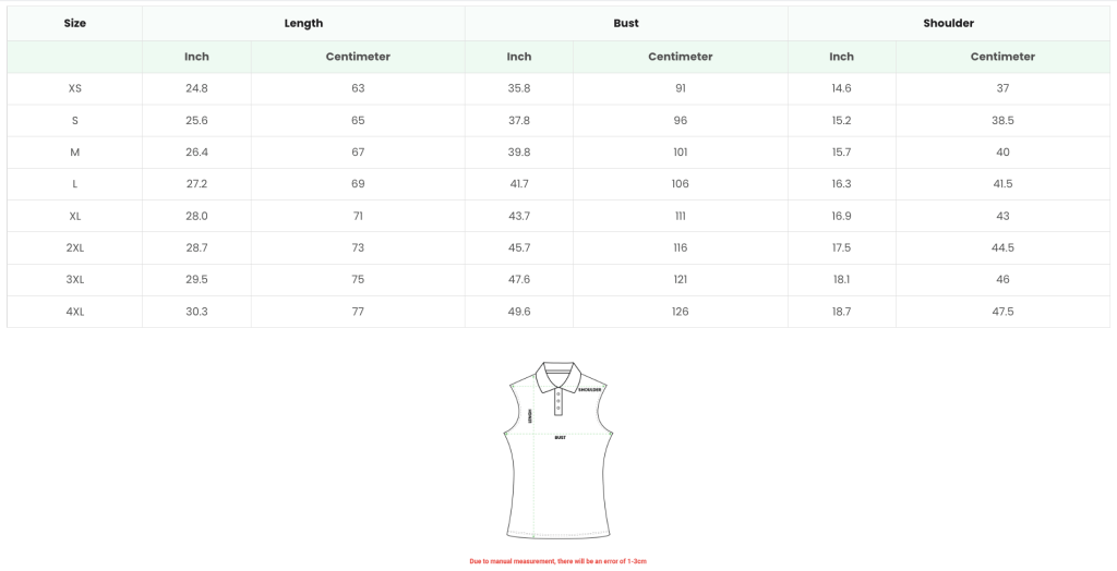 3D T-SHIRT (UNISEX) SIZE CHART KIDS AND YOUTH T-SHIRT SIZE CHART POLO SHIRT (MEN) SIZE CHART SHORT-SLEEVE QUARTER-ZIP JERSEY (MEN) SLEEVELESS POLO SHIRT (WOMEN) QUILT BOMBER JACKET SIZE CHART BASEBALL JACKET SIZE CHART