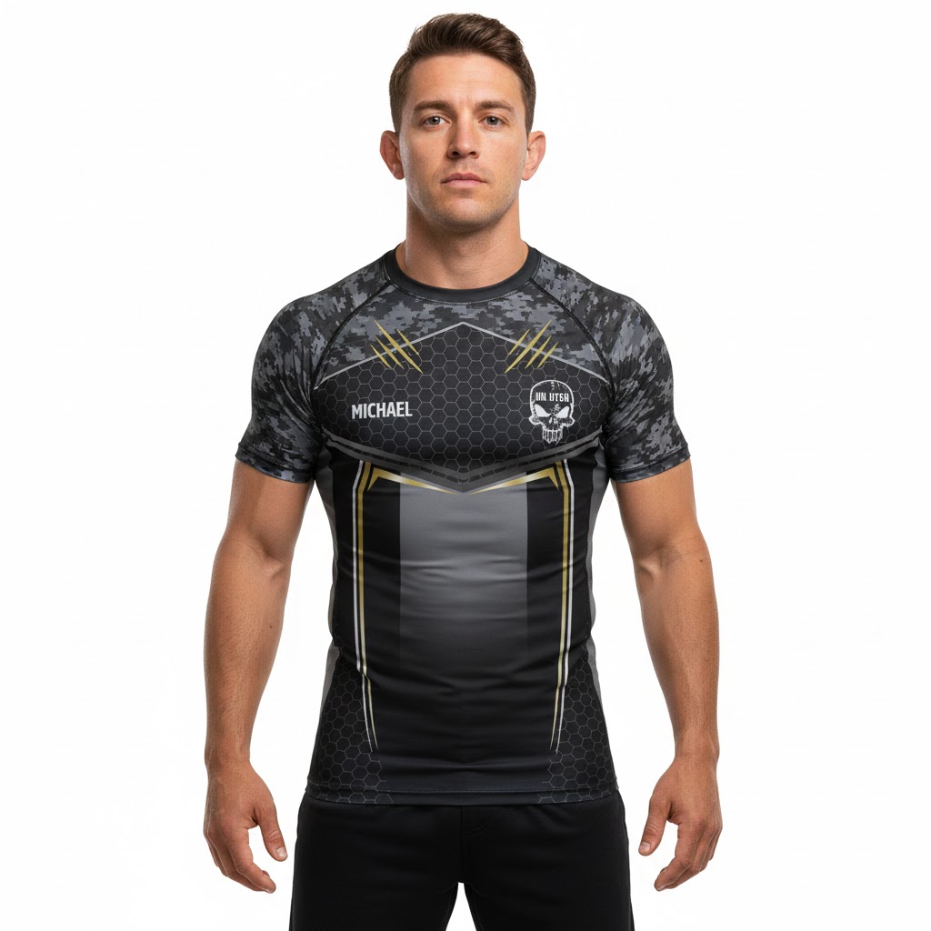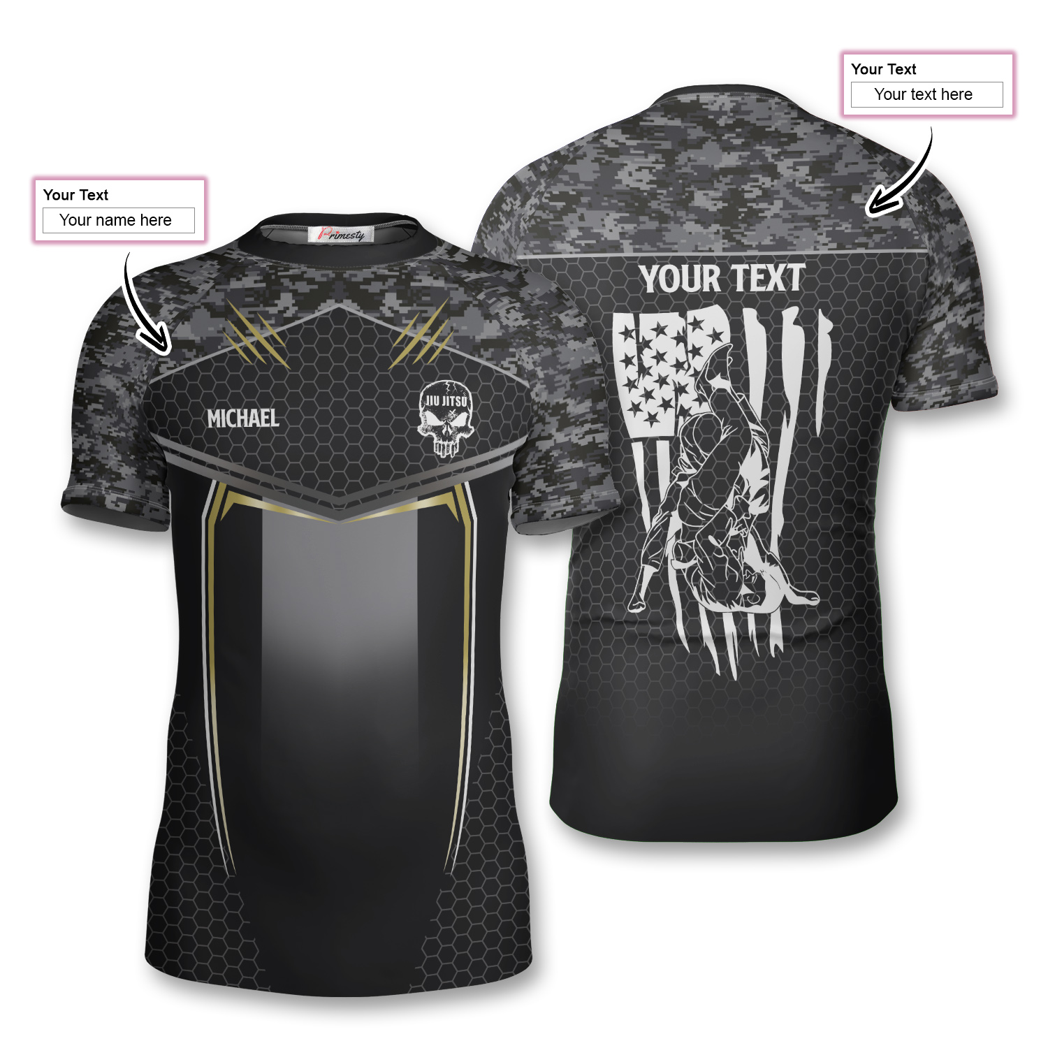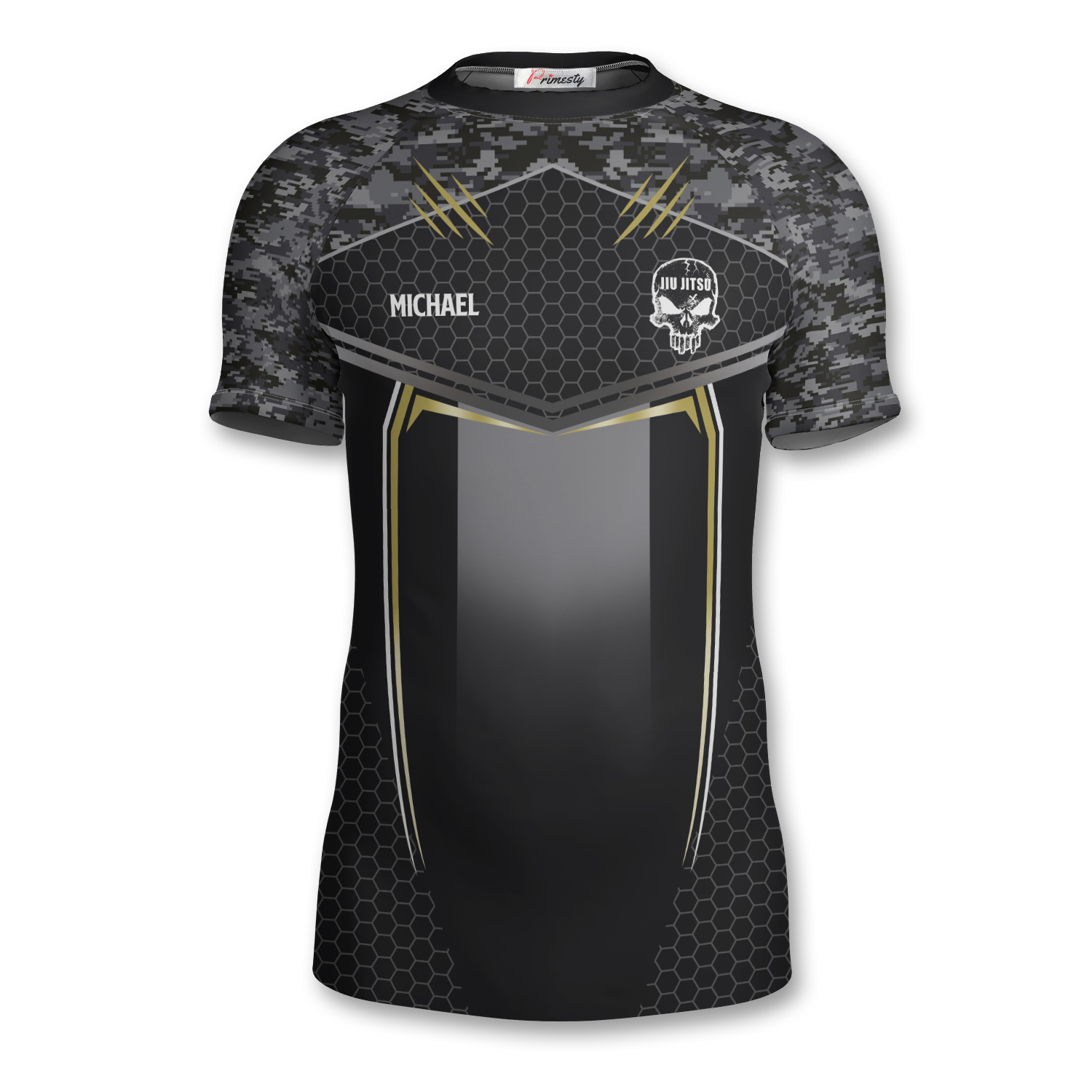 Skull Gray Camo Honeycomb BJJ Custom Brazilian Jiu Jitsu Rash Guard