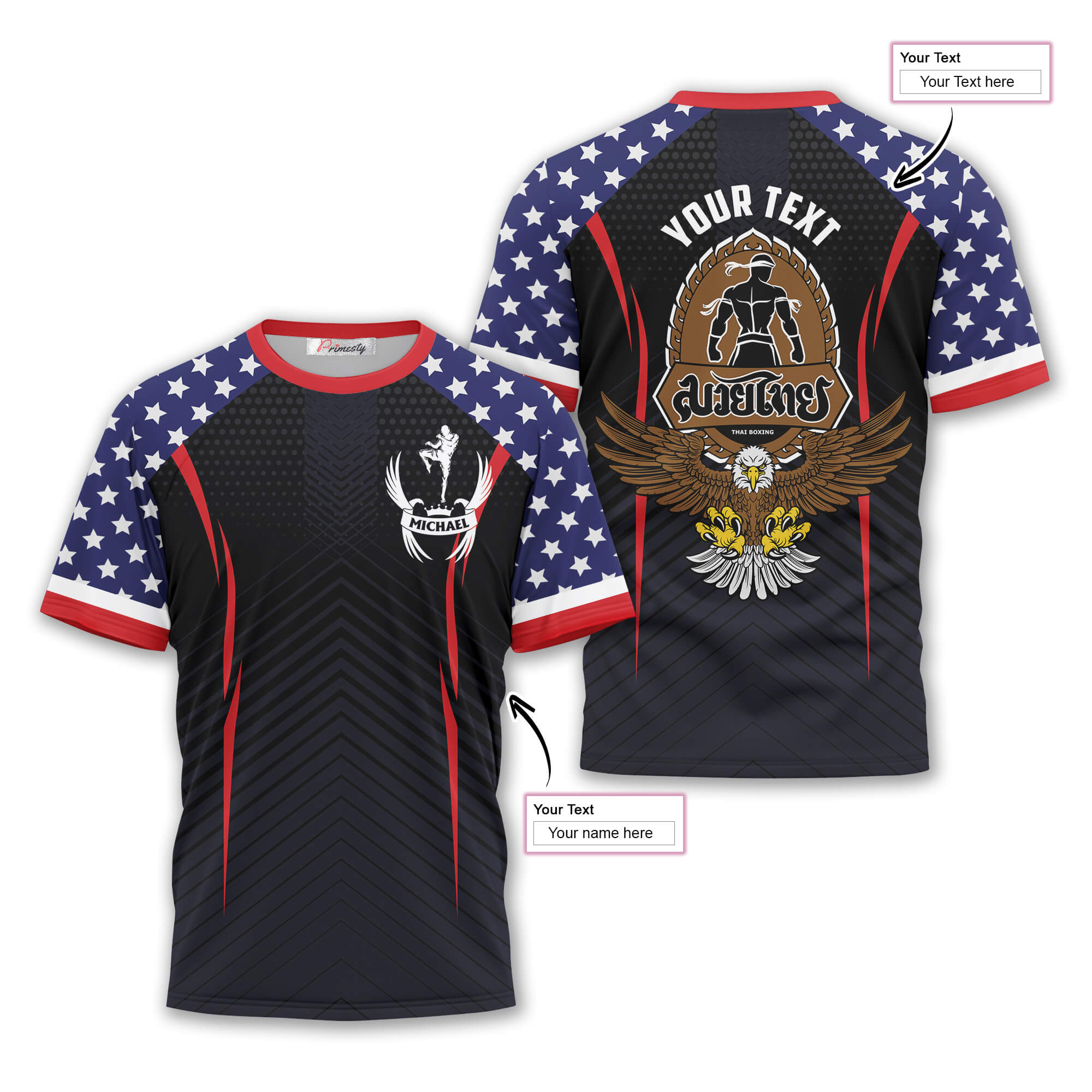 USA Flag Eagle Spirit Custom Muay Thai Shirt
