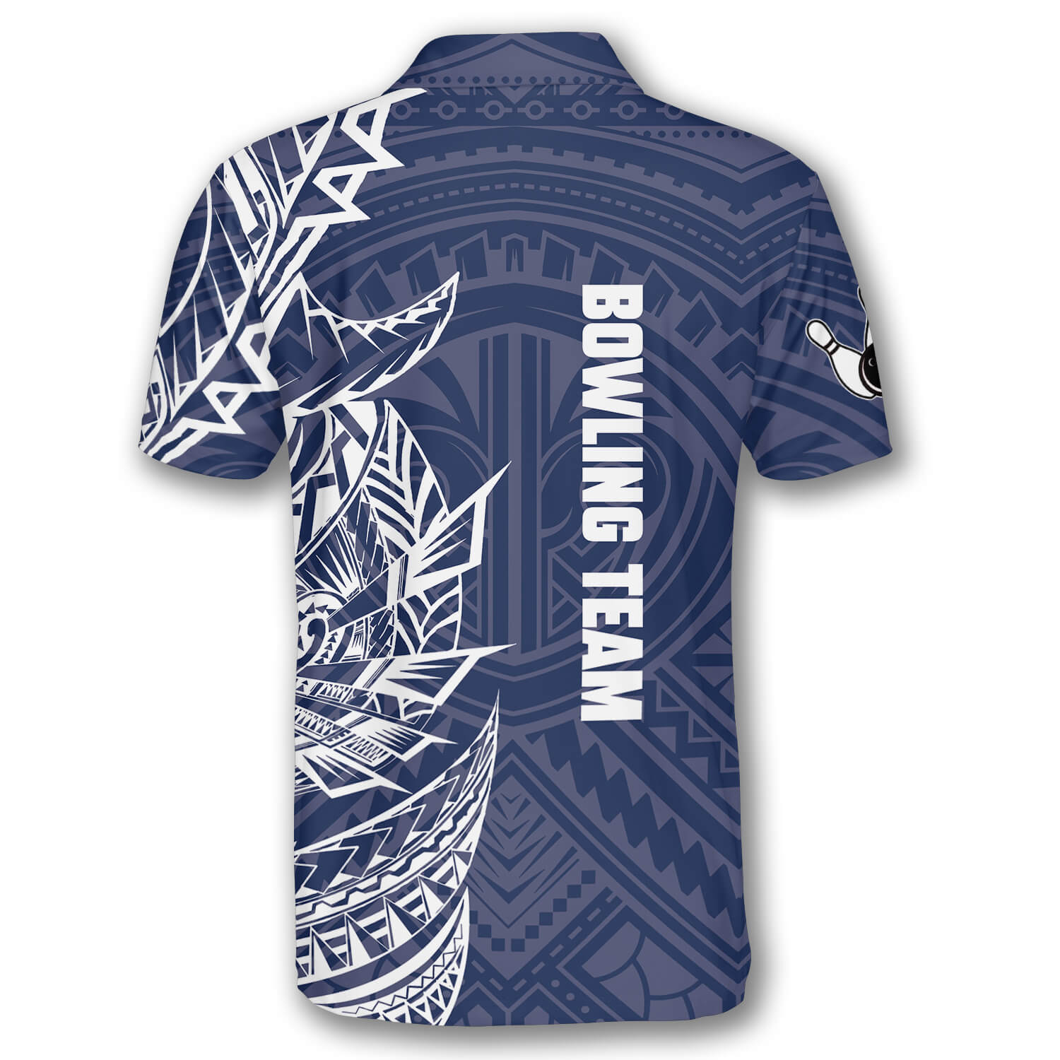 White Blue Tribal Pattern Custom Logo Bowling Shirt