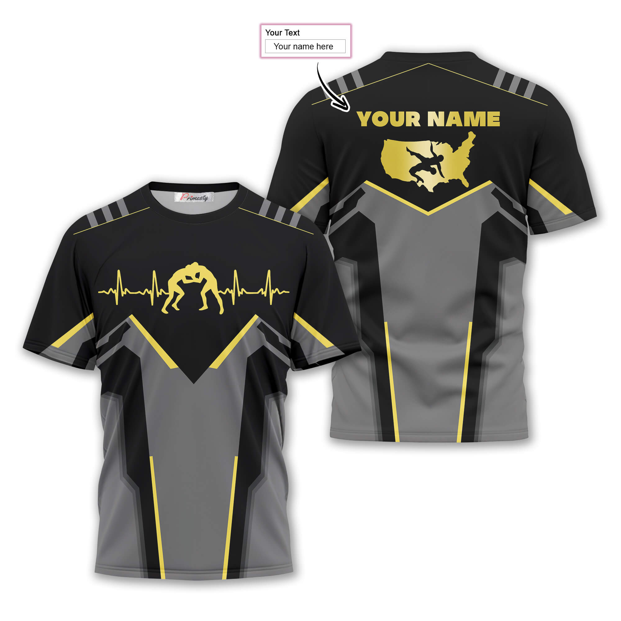 Wrestling Heartbeat USA Map Custom Wrestling Shirt